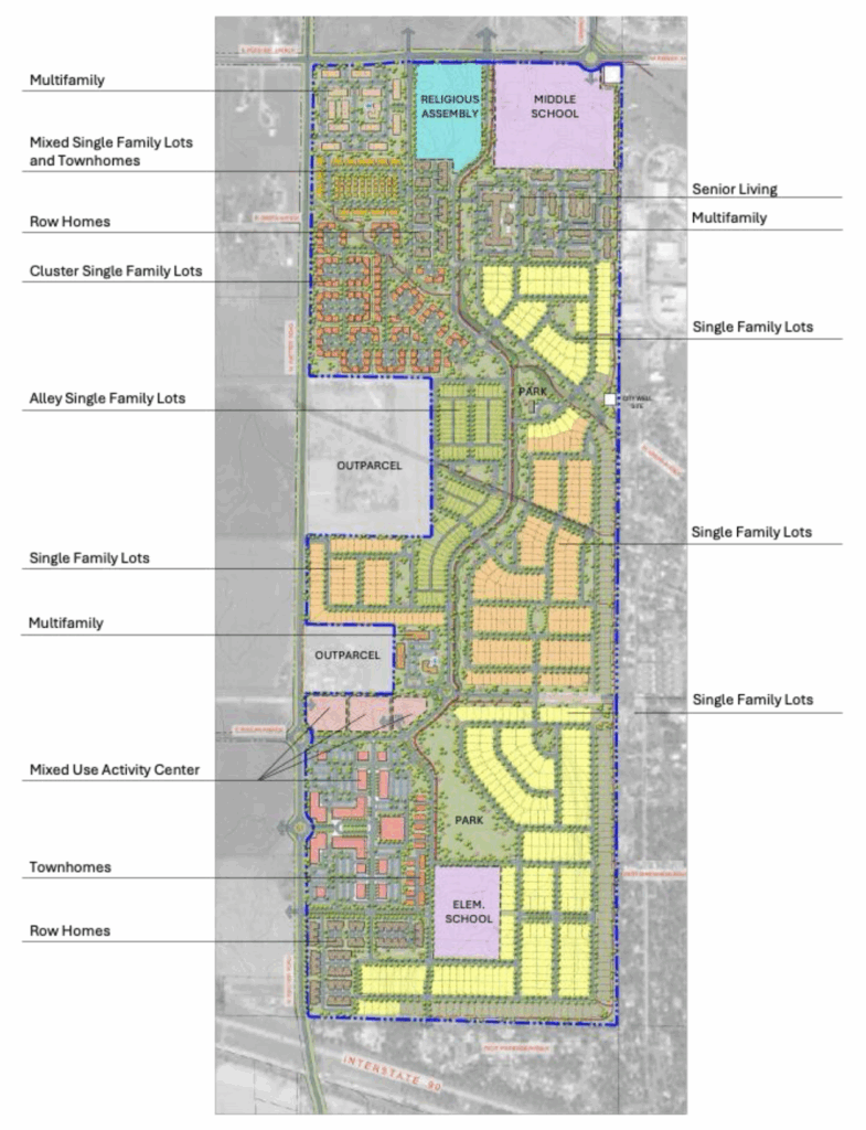 - A variety of homes will be constructed to serve a range of community needs, household types, lifestyles, and preferences. These will include single-family homes, townhomes, and apartments.